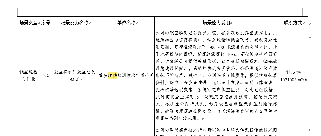 2025年6月6日,重庆市发改委发布了重庆市2025年第一批低空经济应用场景能力清单,重庆璀陆航空瞬变电磁探测系统成功入选。